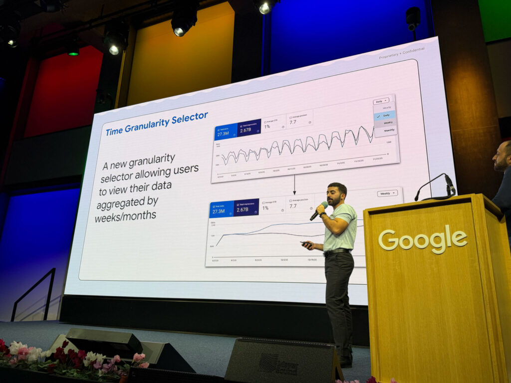 Antes de esta actualización, los informes de rendimiento en Search Console requerían que los usuarios seleccionaran fechas personalizadas o exportaran los datos a hojas de cálculo externas (como Excel o Looker Studio) para poder visualizar tendencias semanales limpias sin el «ruido» de los datos diarios.